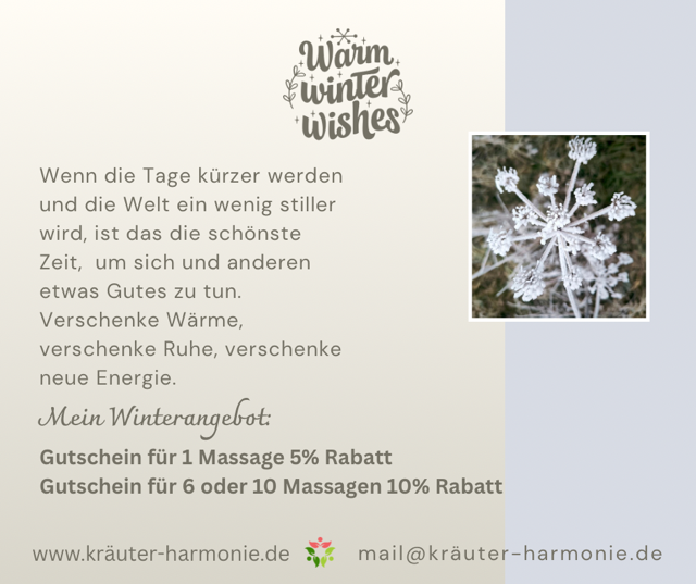 Schenken Sie Ihren Lieben oder sich selbst Zeit für Entspannung. Sprechen Sie mich gerne an.
